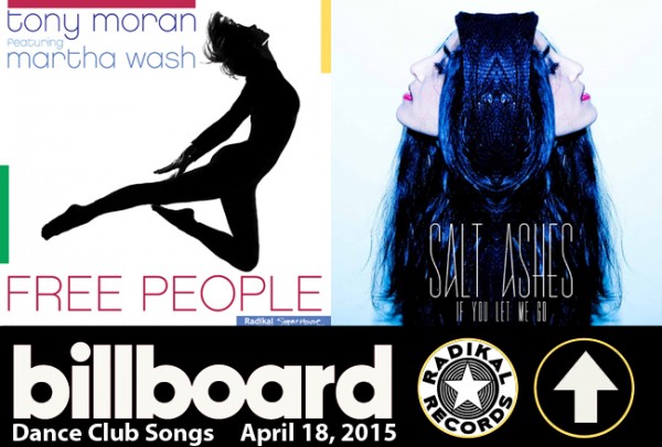 For the first time ever, Radikal Records has two Top 5 singles charting simultaneously on the Billboard Dance Club Chart! For the Week of April 18, 2015 emerging singer Salt Ashes hit #5 with “If You Let Me Go,” and DJ Tony Moran‘s collaboration with the dance diva Martha Wash, “Free People” has jumped to #3 on the charts.