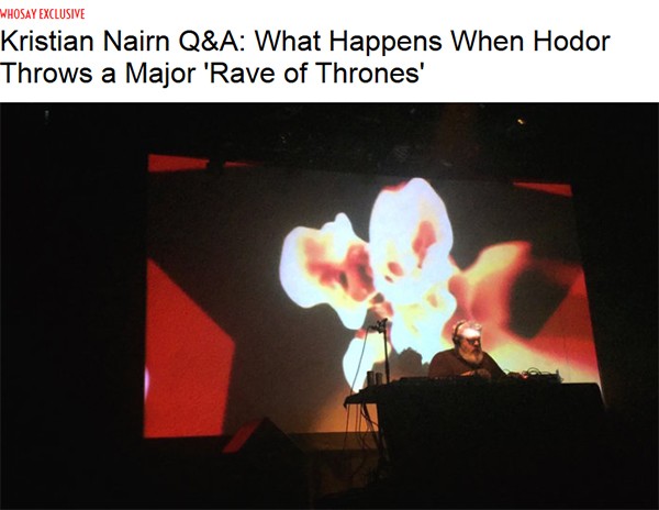 DJ Kristian Nairn sat down with WhoSay.com for an exclusive interview prior to his ‘Rave of Thrones‘ performance this past Thursday night (August 13th) at Irving Plaza in New York City. Nairn sat down with Sarah Bellman of WhoSay, who he spoke with about his ‘Rave of Thrones‘ tour, his debut single “Up/Beacon (featuring Leanne Robinson),” and what we can expect from him in the future. Bellman also gave a rave review of Nairn’s live DJ set that took place at Irving Plaza. Check out the review and interview below, or head over to WhoSay.com.