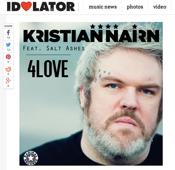 Nairn has already performed live sets (check out the awesome Rave Of Thrones concert poster) and this summer released his debut single. Now we’re premiering the follow-up, “4 Love.” His Hodor character only knows how to say one word — his name — so it’s no surprise that he’s snagged Salt Ashes for vocal duties here. The song’s shimmering house loops aren’t too far from her synth-pop wheelhouse, and we’re totally digging the Madonna vibes she gives off in the verses.