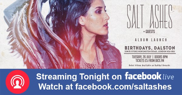 Can’t make Salt Ashes album launch party tonight that is taking place at Birthday’s in London? Don’t worry, we have you covered! You can stream Salt Ashes’ her album launch party on Facebook Live. At 4:45 PM EST head over to Salt Ashes Facebook page to catch the the performance!