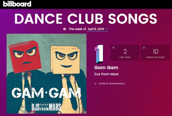 Click for the full Billboard Dance Club Songs Chart for the week of April 6th, 2019#1 on Billboard Dance - DJs From Mars "Gam Gam"