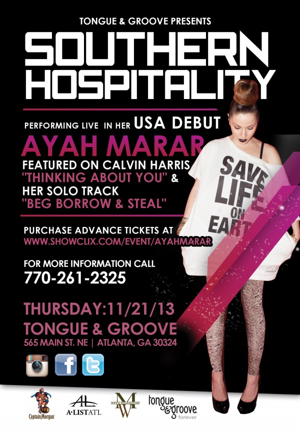 Ayah Marar is about to go on her first US tour and she kicks it off at Tongue & Groove in the ATL on November 21st. If you’re in the area, hit up the show and check out Ayah perform some of her latest singles off her album The Real like “Beg Borrow Steal” and the explosive Calvin Harris track “Thinking About You.” Tickets are 20 bucks and can be purchased here. The show is only 2 days away, so don’t miss out!