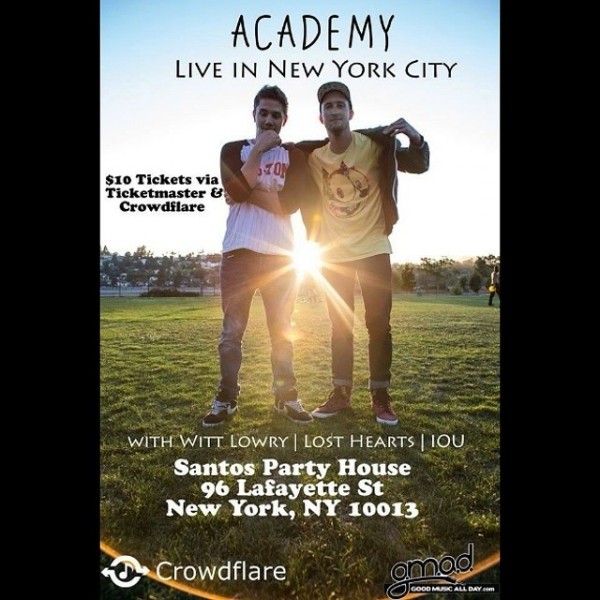 We are very happy to announce our guys I.O.U. aka Inside Our Universe open for Rhode Island up and comers Academy as they make their NYC debut at the legendary Santos Party House! The guys have been on a mini tour promoting their debut album the Soul & the Intellect, with shows at Webster Hall opening for Miami native Cris Cab, and at the Stanhope Party House in November opening for the 90’s pop star Aaron Carter. You can purchase their album on iTunes today and stream the video for their latest single “Greatest Time Of My Life” below!