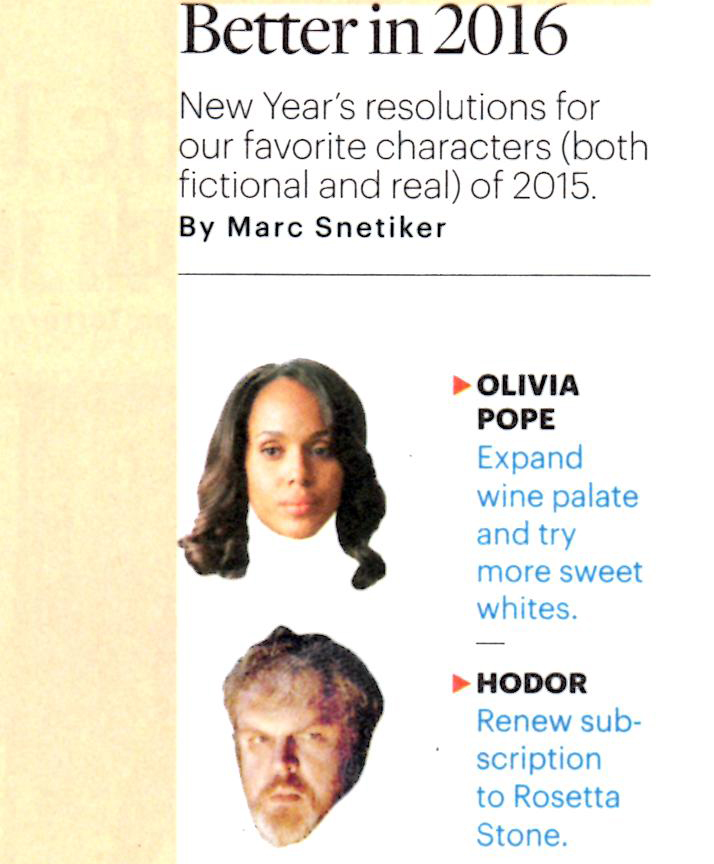 In the brand new special double issue of Entertainment Weekly in stores now, writers created New Year’s resolutions for their favorite TV characters and Kristian Nairn’s Game of Thrones character Hodor happened to be one of them. Read below to see what Hodor’s resolution for 2016 is: