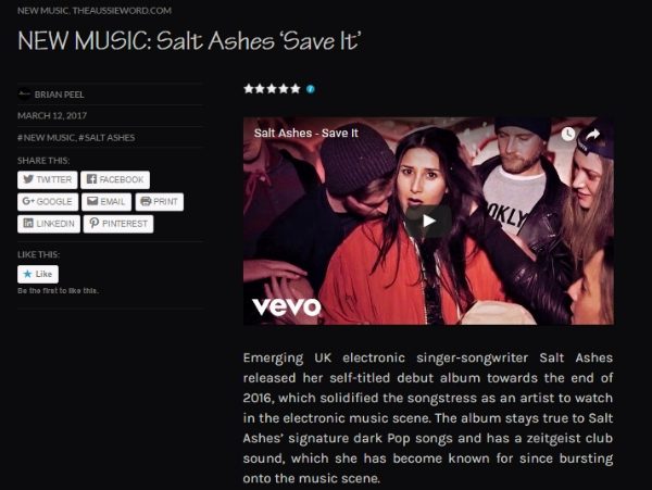 Salt Ashes’ “Save It” Music Video Featured on The Aussie Word