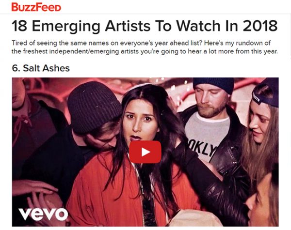 Salt Ashes comes in at #6 on the BuzzFeed list, alongside rising pop and indie artists like Emily Vaughn, Luna Shadows, Violet Days, LPX and Elohim.